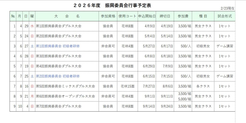 第1回振興委員会ダブルス大会要項準備中です