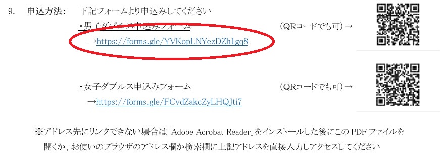 • GoogleフォームURLは【大会申込表】にある、各大会ごとの「第○回大会要項(PDF)」内に記載しています(※GoogleフォームURLは大会ごとに違いがあります)
